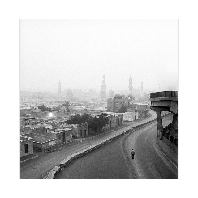 Un homme suit un chemin vers la ville, un sac à la main au Caire, au petit matin du premier jour de la dernière année du deuxième millénaire